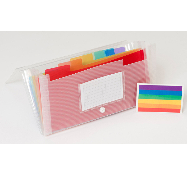 Vnitřek rozdělen barevnými záložkami na samostatné sekce dle měsíců. Široké otevření pro snadné zakládání.