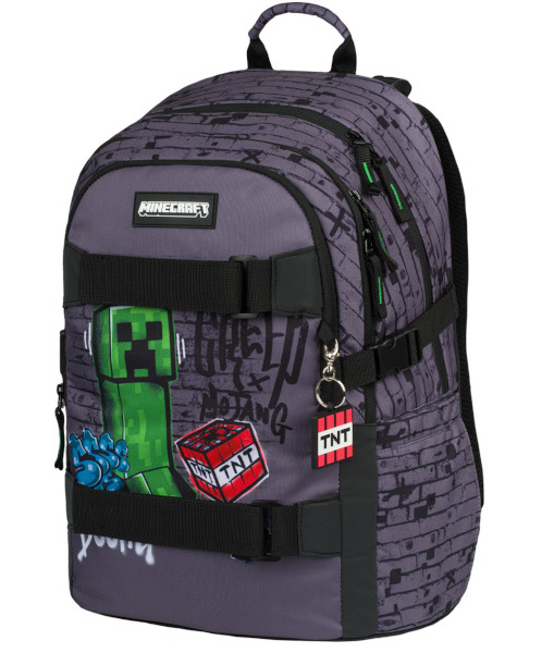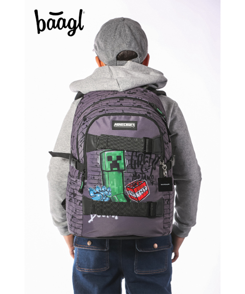 Ergonomický školní batoh Skate v oficiálním designu počítačové hry Minecraft s popruhy na uchycení skateboardu je ideální pro všechny fanoušky této legendární hry.
