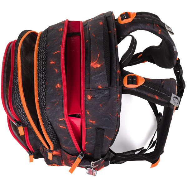 Má dvě komory a dvě přední kapsy, které pojmou vše potřebné, a ergonomicky tvarovaná záda pro správné držení těla.