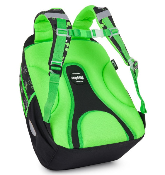 isponuje anatomicky tvarovanými zády, polstrovanými ramenními popruhy a hrudním popruhem.