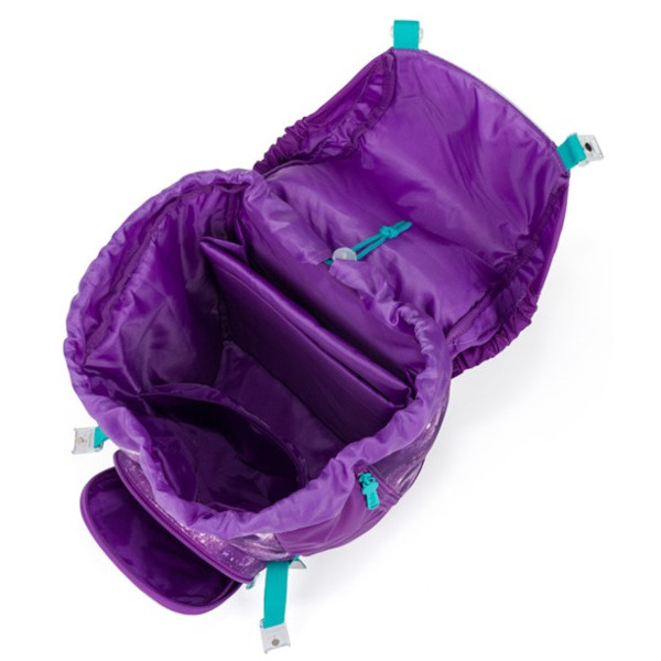 Nechybí vnitřní rozřazovač, stahování na šňůrku, boční kapsa na láhev ani přední kapsička na svačinu.