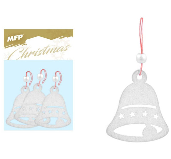 Vánoční dekorace - zvonek stříbrný s korálkem, vyřezávaný.