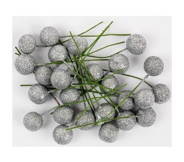 Dekorační ovoce Cesmína 12mm stříbrné glittrové
