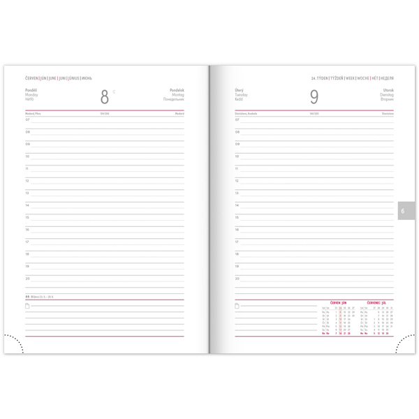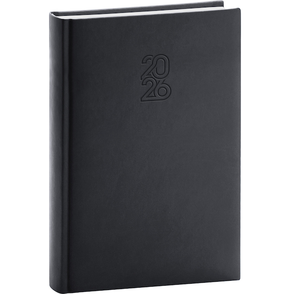 denní diář Aprint 2026 v černé barvě • kolekce vsadila na osvědčené barvy, které doplňuje nová ražba letopočtu • denní rozvrh s česko-slovenským kalendáriem a doplňkovou angličtinou, němčinou, maďarštinou a ruštinou • kalendárium od prosince 2025 • měsíční plánovací kalendář 2026 • měsíční plánovací kalendář 2027 • roční plánovací kalendář 2026–2027 • pracovní plánovací kalendář • svátky České a Slovenské republiky a mezinárodní svátky • rozšířený seznam českých jmen • mapa České a Slovenské republiky • místo pro osobní údaje • textilní záložka • perforované růžky • prostor pro poznámky • rozměr: 15 x 21 cm • PGD-DA5AP-6464