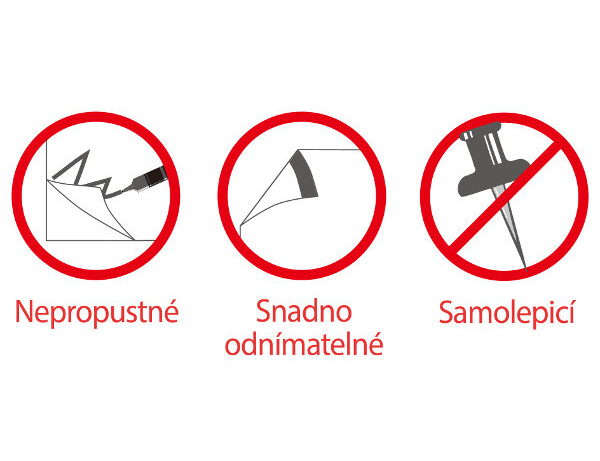 Listy lze díky lepicímu pruhu nalepit na běžné hladké povrchy v kanceláři a zasedací místnosti.