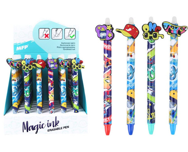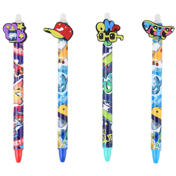 Gumovací kuličkové pero s motivy street art přináší hravý a moderní vzhled inspirovaný pouličním stylem.