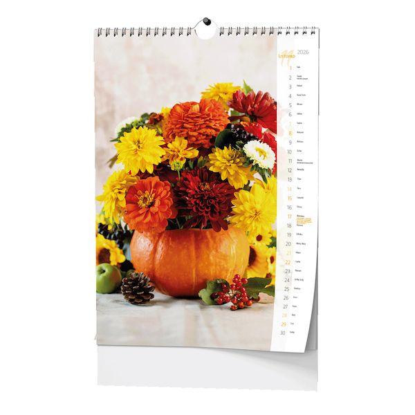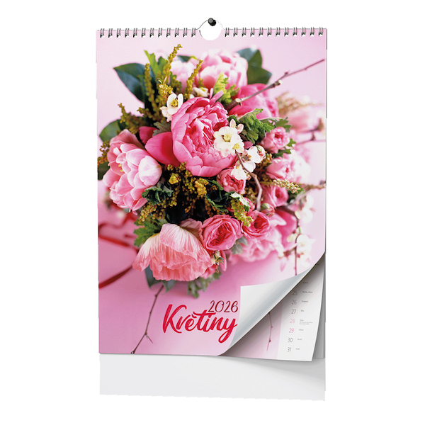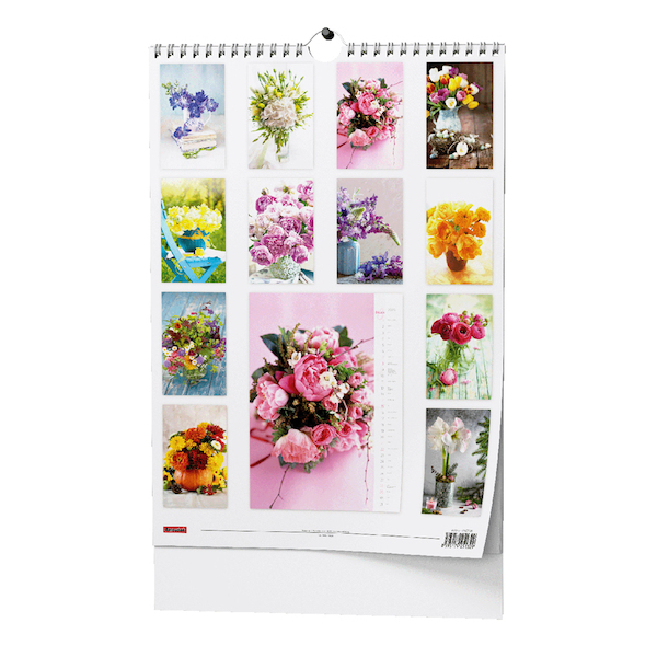 nástěnný kalendář s obrázky barevných kytic a květů • kalendárium: jmenné kalendárium se státními svátky • vhodná technika potisku: sítotisk, UV tisk • rozměr (mm): 320x450 • BNG7-26