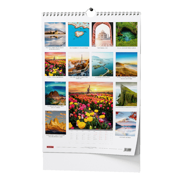 nástěnný kalendář s nádhernými obrázky z celého světa • mezinárodní měsíční kalendárium • vhodná technika potisku: sítotisk, UV tisk • rozměr (mm): 320x450 • BNF5-26