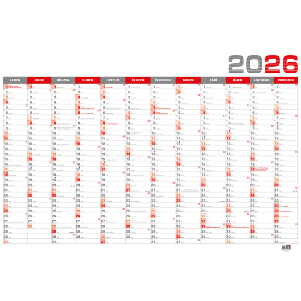Velký nástěnný kalendář vhodný pro kanceláře a zapisování všech důležitých termínů.