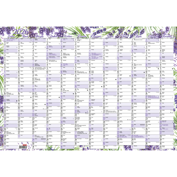 Nástěnný roční kalendář - Levandule v praktické velikosti 60 cm.