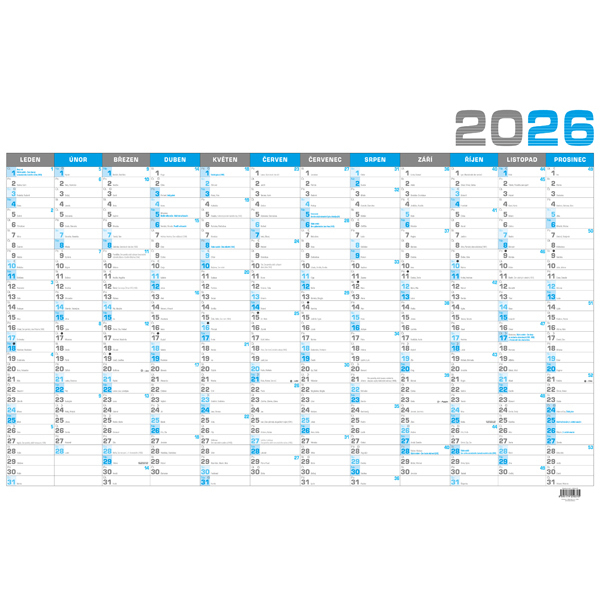 Velký nástěnný kalendář vhodný pro kanceláře a zapisování všech důležitých termínů.