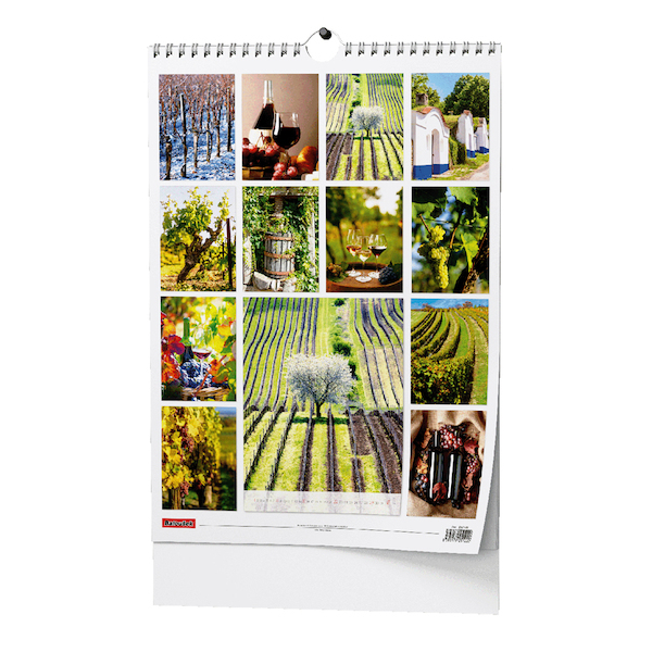 nástěnný kalendář pro milovníky vína a vinic • mezinárodní měsíční kalendárium • vhodná technika potisku: sítotisk, UV tisk • rozměr (mm): 320x450 • BNF1-26
