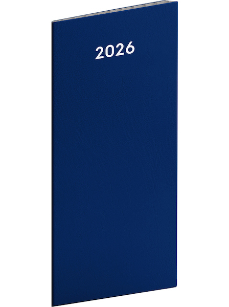 Praktický tenký diář v modré barvě s měsíčním rozložením se vejde opravdu všude.
