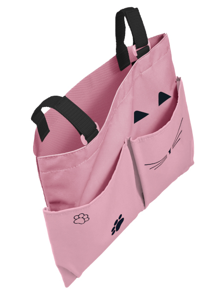 Pomocí suchého zipu se připevní ke školní lavici, k uložení slouží jedna velká a dvě menší kapsy.