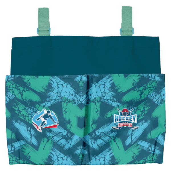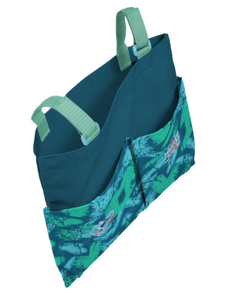 Pomocí suchého zipu se připevní ke školní lavici, k uložení slouží jedna velká a dvě menší kapsy.