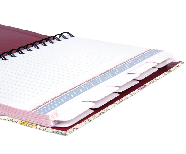 Každých 8 listů je rozděleno papírovým rozdělovníkem, který je možno si popsat druhem receptu.