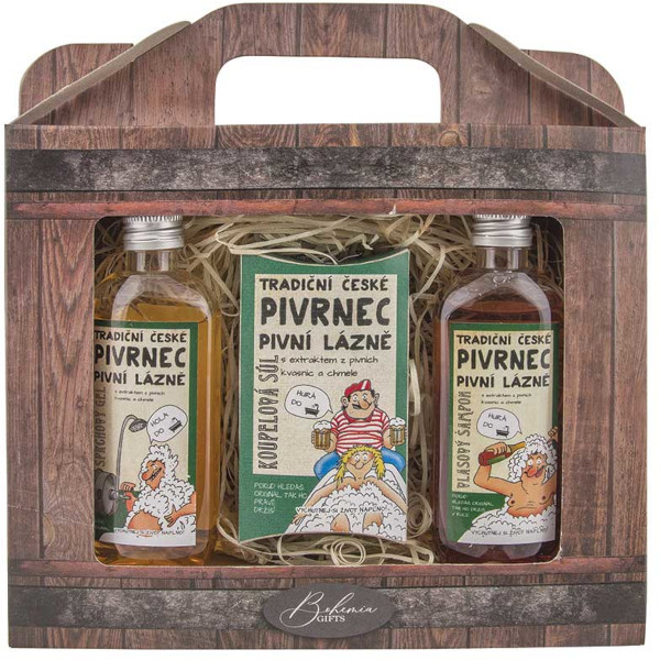 Dárkový kosmetický balíček pivní kosmetiky Pivrnec – sprchový gel 100 ml, koupelová sůl 150 g a vlasový šampon 100 ml