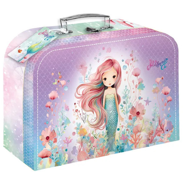 Papírový kufřík na výtvarné potřeby a jiné školní pomůcky.