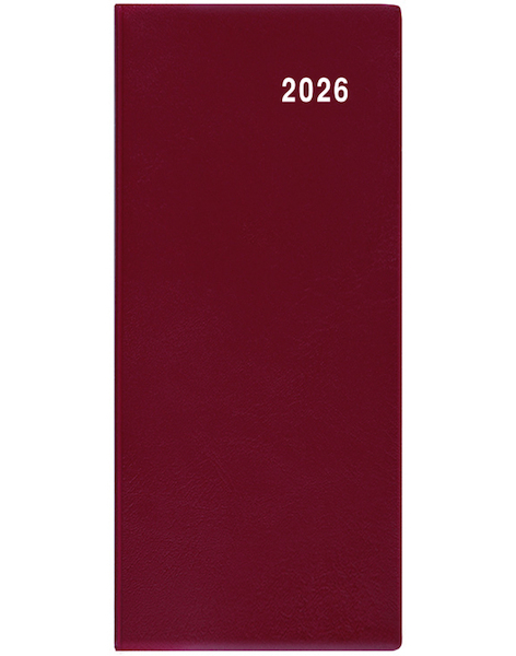 jednoduchý a praktický měsíční diář vyrobený z jemného hladkého materiálu s polomatným povrchem v barvě bordó • ideální pro každého, kdo si oblíbil měkkou šitou vazbu • kalendárium: časové rozmezí 7:00 - 17:00, měsíční fáze, roční období, letní a zimní čas, počet dnů • informační stránky: osobní záznamy, důležitá telefonní čísla, roční plánovací kalendář aktuálního roku, tabulkový kalendář aktuálního a následujícího roku, jmenný seznam, adresář • rozměr: 79x179 mm • vhodná technika potisku: sítotisk, ražba přes pásku • BMB1-3-26