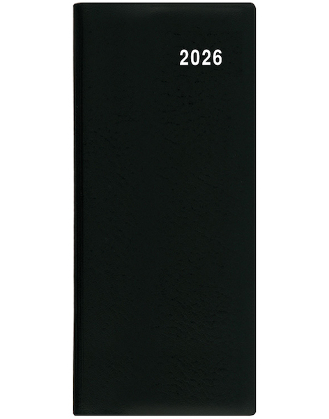 jednoduchý a praktický měsíční diář vyrobený z jemného hladkého materiálu s polomatným povrchem černé barvy • ideální pro každého, kdo si oblíbil měkkou šitou vazbu • kalendárium: časové rozmezí 7:00 - 17:00, měsíční fáze, roční období, letní a zimní čas, počet dnů • informační stránky: osobní záznamy, důležitá telefonní čísla, roční plánovací kalendář aktuálního roku, tabulkový kalendář aktuálního a následujícího roku, jmenný seznam, adresář • rozměr: 79x179 mm • vhodná technika potisku: sítotisk, ražba přes pásku • BMB1-2-26