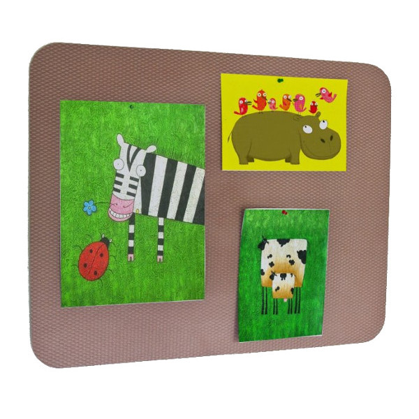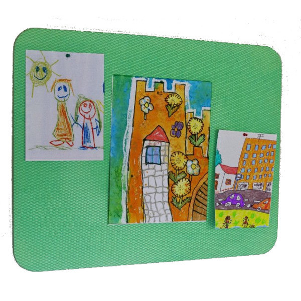 Nástěnka je vyrobena z českého materiálu VYLEN®, do kterého jsou vpichy špendlíkem snadné a po vyndání špendlíku jsou vpichy nepatrně viditelné. Z jedné stany má jemný reliéf a z druhé strany samolepící vrstvu, díky které snadno nástěnku přilepíte na zeď bez použití hmoždinek či hřebíčků.