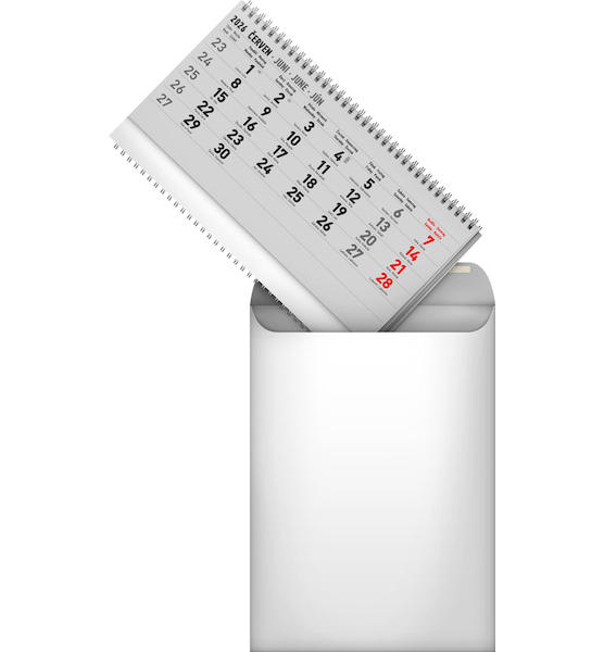 Praktický čtyřměsíční kalendář s plochou pro potisk a náhledem čtyř měsíců současně můžete díky dvojité spirále pohodlně složit do obálky velikosti A4.