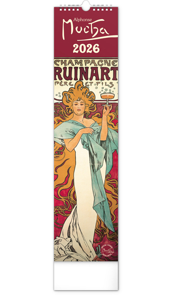 česko-slovenský nástěnný kalendář v kravatovém formátu s reprodukcemi obrazů oblíbeného secesního malíře českého původu • rozměr: 12 x 48 cm • PGN-35756-L