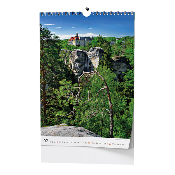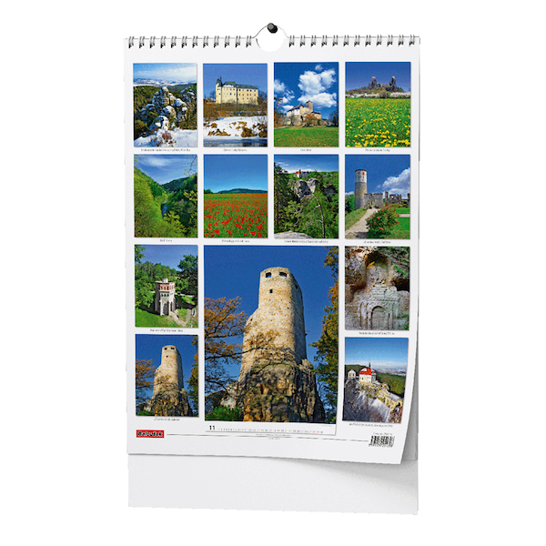 nástěnný kalendář s obrázky Českého ráje • kovová spirála "twin wire" po celé šířce kalendáře s háčkem pro zavěšení, obálka je tištěna na křídový papír s gramáží 150 g/m2, spodní karton je z kvalitní bílé lepenky v gramáži 600 g/m2 • rozměr: 320x450 mm • vhodná technika potisku: sítotisk, UV tisk • BNK3-26