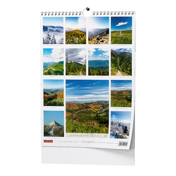 nástěnný kalendář s obrázky krásných hor Čech a Moravy • vhodná technika potisku: sítotisk, UV tisk • rozměr (mm): 320x450 • BNG5-26