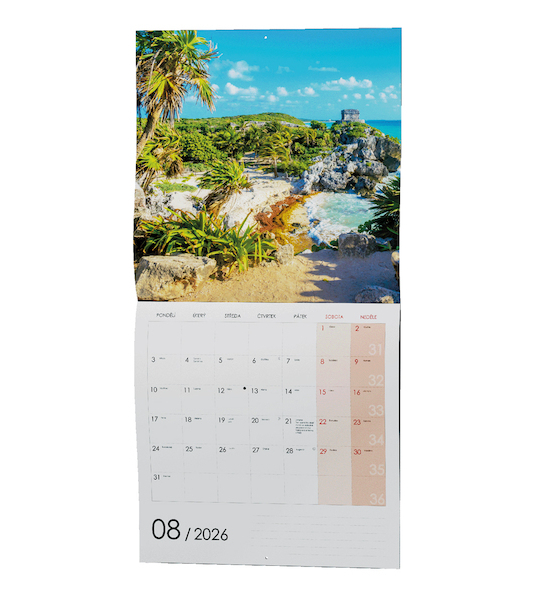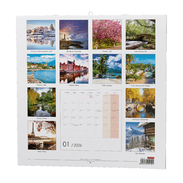 nástěnný kalendář s měsíčním kalendáriem, v moderním formátu lp desky s kouzelnými obrázky romantických míst • kalendárium: poznámkové kalendárium se státními svátky, měsíční fáze, roční období, letní a zimní čas, místo na poznámky • informační stránky: tabulkový kalendář, místo na poznámky • rozměr (mm): 285x285 ( 285x570 rozloženo) • BNL6-26