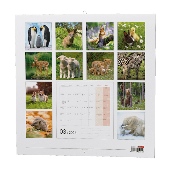 nástěnný kalendář s měsíčním kalendáriem, v moderním formátu lp desky s originálními a vtipnými obrázky zvířat • české měsíční jmenné kalendárium • tabulkové kalendárium, státní svátky, ostatní svátky a významné dny, měsíční fáze, roční období, letní a zimní čas, místo na poznámky • rozměr (mm): 285x285 ( 285x570 rozloženo) • BNL9-26