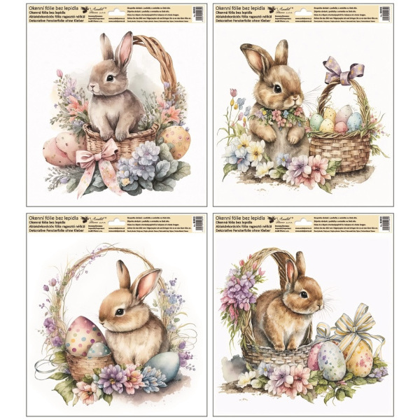 Okenní fólie velikonoční zajíček s glitry 30 x 33,5 cm