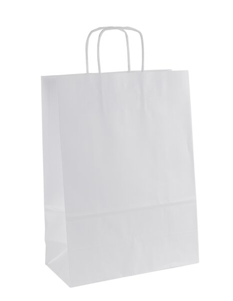 Papírové tašky jsou vyrobené z bílého kraftového papíru.