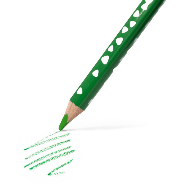 Trojúhelníkový tvar umožnuje snadnější uchopení a děti se tak lépe naučí správnému držení.