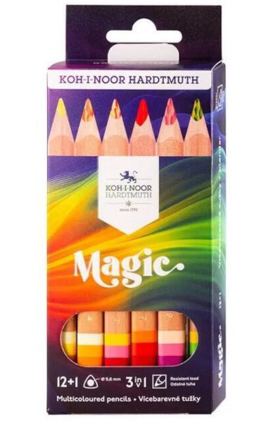 Úžasné trojhranné pastelové tužky MAGIC TR 10,4 mm v dřevěném plášti z certifikovaného dřeva FSC 100% se speciálním vysoce kvalitním tříbarevným jádrem – 3 odstíny barvy v jedné tuze.