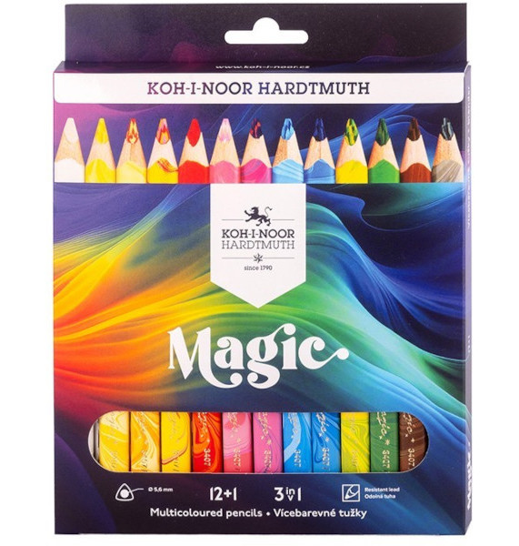 Speciální pastelky s multibarevným jádrem složeným do barevné šachovnice, které vytváří různobarevnou měňavou stopou. 12+1ks ZDARMA
