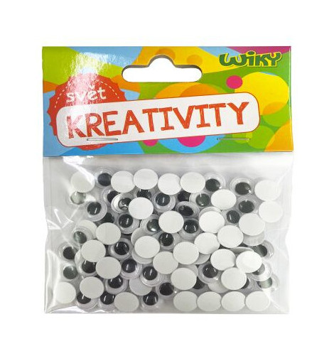 Pohyblivé oči o průměru 1cm - oči mají pohyblivou přední část - slouží k výtvarným účelům (dotvoření postav lidí, zvířat)
