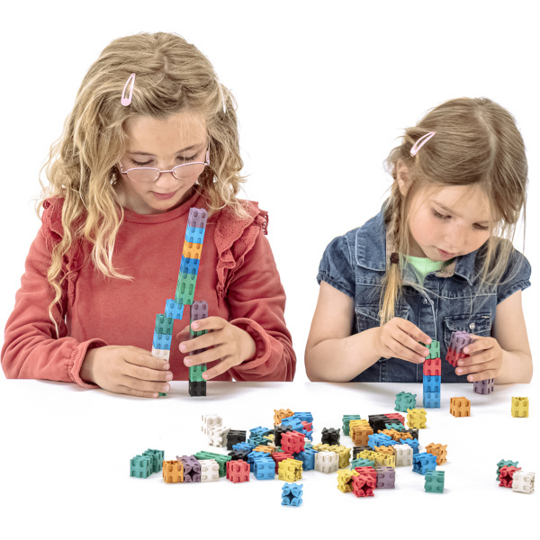 Hledáte jednu sadu; se kterou děti staví; hrají si a zároveň „dělají matiku“? Spojovací kostky v 10 barvách přesně to splňují.
