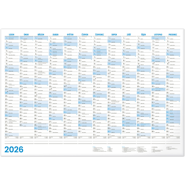 praktický roční kalendář pro rychlé zaznamenání a vyhledání poznámky • obsahuje kalendárium s českými jmény a světovými svátky na bílém pozadí • rozměr: 59,4 x 42 cm • PGN-35767