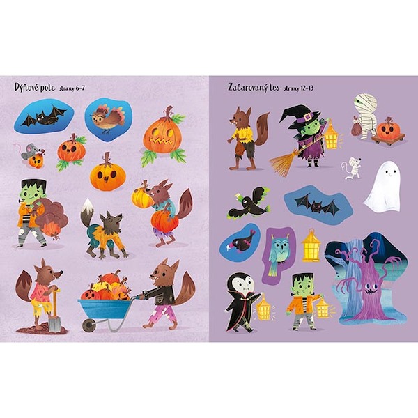 Samolepková knížka obsahuje 16 barevných stran a 8 stran samolepek k dolepení.