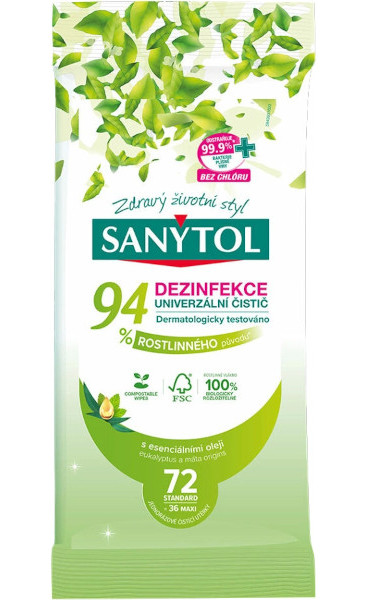 Utěrky Sanytol obsahují 94 % rostlinných složek.