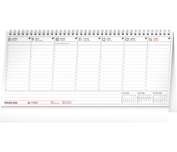 stolní kalendář se sloupcovým kalendáriem obsahuje všechny termíny daňových povinností, česká jména, svátky a památné dny a tříměsíční přehled u každého týdne • s tímto kalendářem již nezapomenete na žádnou svou schůzku či jednání, a ještě vám zbyde dostatek místa na další poznámky a záznamy • rozměr: 33 x 14,5 cm • PGS-35305