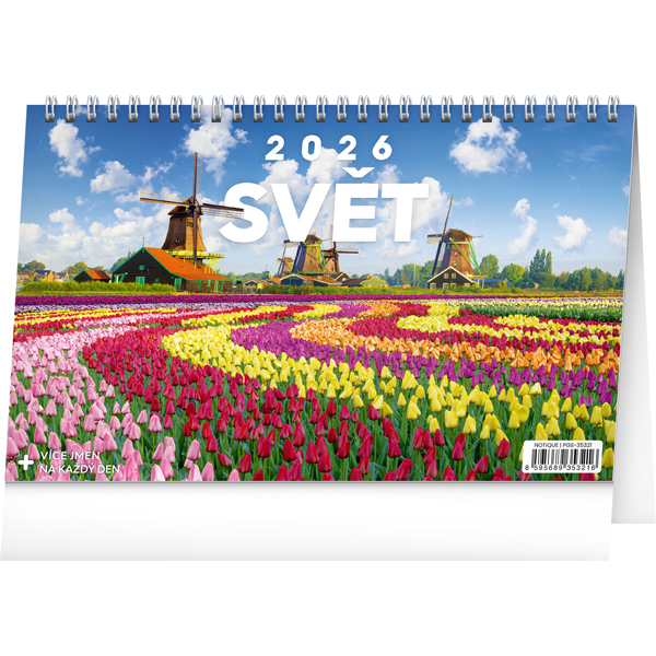 praktický stolní kalendář s 53 fotografiemi těch nejkrásnějších a nejzajímavějších koutů celého světa • procestujte svět křížem krážem a podívejte se na místa, která běžně nespatříte • navštivte světové metropole i zapadlé vesničky, aniž byste museli utrácet za dovolenou • stolní kalendář s českým kalendáriem obsahuje svátky a památné dny, měsíční fáze a přehled na celý rok 2026 a 2027 • rozměr: 23,1 x 14,5 cm • PGS-35321