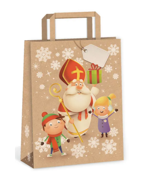 Mikulášská taška z pevného recyklovatelného papíru pro krásné a rychlé balení dárků.