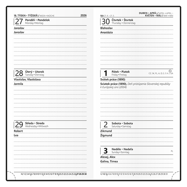 kapesní týdenní diář v petrolejové barvě je vyráběný z jemné hladké vivelly s efektní ražbou s motivem kola • trendy a praktický doplněk do každé kapsy • diář má velký prostor pro poznámky a plánování • kalendárium: měsíční fáze, roční období, letní a zimní čas, znamení zvěrokruhu, řádkový přehled 2 měsíců, dny a měsíce v 4 jazycích - CS, SK, EN, DE, mezinárodní svátky: CZ, SK, A, D, PL, H, GB, E, F, I, UA • informační stránky: osobní údaje, přehledný kalendář aktuálního roku a následujícího roku, měsíční plánování aktuálního roku, plán dovolených aktuálního roku, jmenný seznam CZ/SK, mezinárodní svátky, roční plánovací kalendář CZ aktuálního roku, místo pro poznámky • rozměr: 75x150 mm • vhodná technika potisku: ražba, ražba přes pásku, sítotisk • BTJ61-25-26