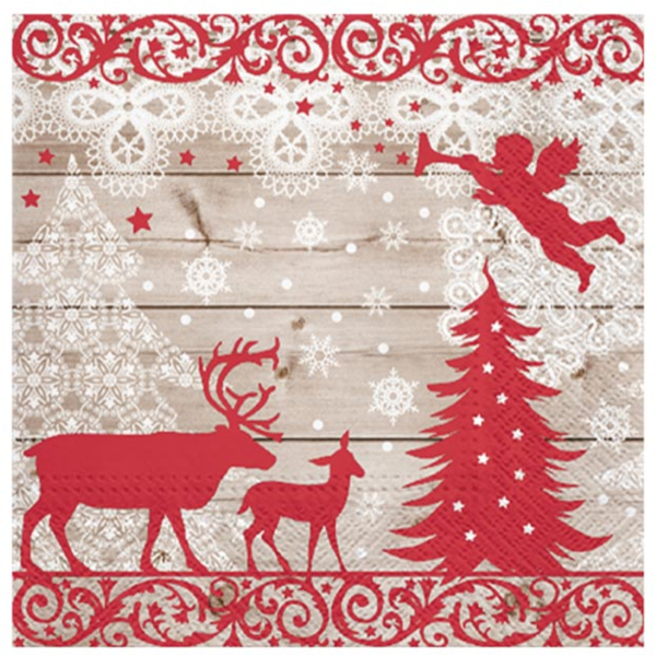 Ubrousky vánoční třívrstvé motivem sobů a anděla 33x33cm