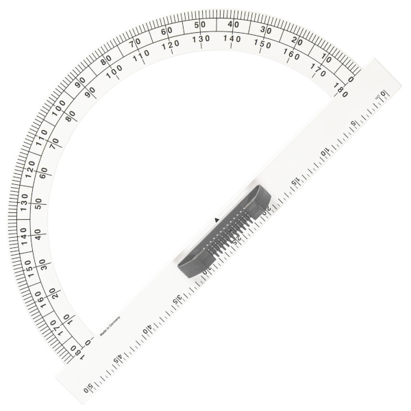 Tabulový plastový úhloměr 180 stupňů s madlem