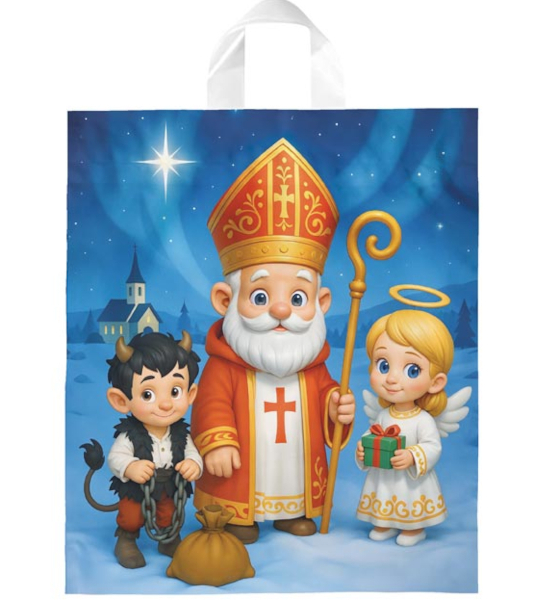 • Celoplošně potištěná, igelitová taška s vánočním motivem a navařeným uchem.