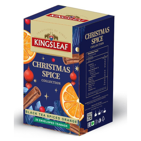 20 sáčků • ochucený • aromatizovaný • černý čaj, aroma (pomeranč, skořice, kardamom) • hmotnost 40 g (20 x 2 g)